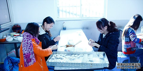 員工們正在緊鑼密鼓的包餃子
